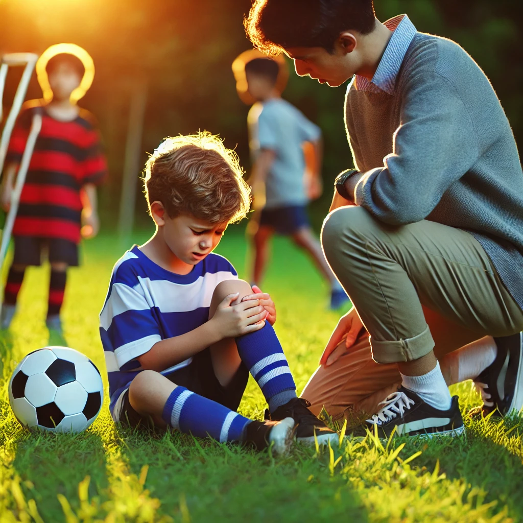 ”Tiedän, että tuntuu epäreilulta, kun kaverit harjoittelee ja sinun täytyy odottaa. Mutta polvesi paranee kunnolla vain, jos annat sille aikaa. Voimme keksiä yhdessä, mitä voit tehdä nyt – ehkä harjoitella syöttöjä istualtaan? Kun palaat kentälle, olet viisaampi ja vahvempi kuin koskaan!”